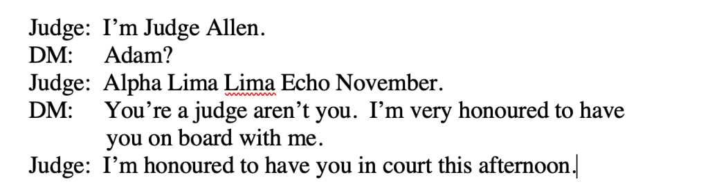 During the course of the course of the interactions Evie has described, I realised that I’d met DM before, in a telephone hearing on 24th February 2021 before Deputy District Judge Allen. In that hearing he was ebullient.