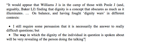 Alex Ruck Keene, barrister with expertise in the law and mental capacity, has recently blogged about the use of the concept of dignity in law: