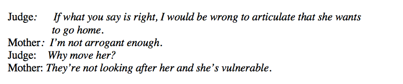 The written submission (the position statement) prepared for NW’s mother (on a direct access pro bono basis, at short notice) by Victoria Butler Cole made additional arguments. She pointed out that NW’s right to respect for her family is “of fundamental importance”, drawing on case law[1] to argue that: “It is for the state to show that institutional care is better than care at home, and further, that the person’s welfare cannot be adequately sustained other than in an institution.”