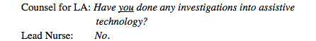 Counsel for the Local Authority, Robert Goodwin, continued his cross-questioning and asked the lead nurse about assistive technology being considered at the Best Interests meeting on 9 July. She said she had not been in that meeting and couldn’t comment on ‘how the discussions went’.
