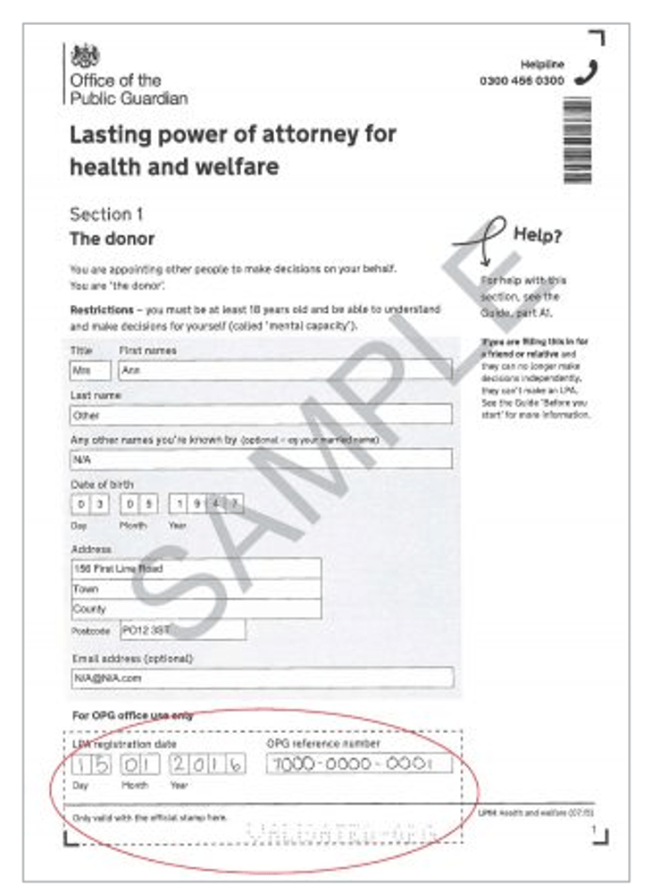 - Ask to see the original Lasting Power of Attorney document (for LPAs registered pre- 17.7.2020). The picture below shows the stamp and perforated confirmation you would expect to see on a registered document.