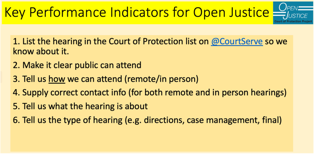 On this occasion I was also mindful of the Open Justice Court of Protection work on assessing the performance of the Court of Protection which you can see listed below and read more about here