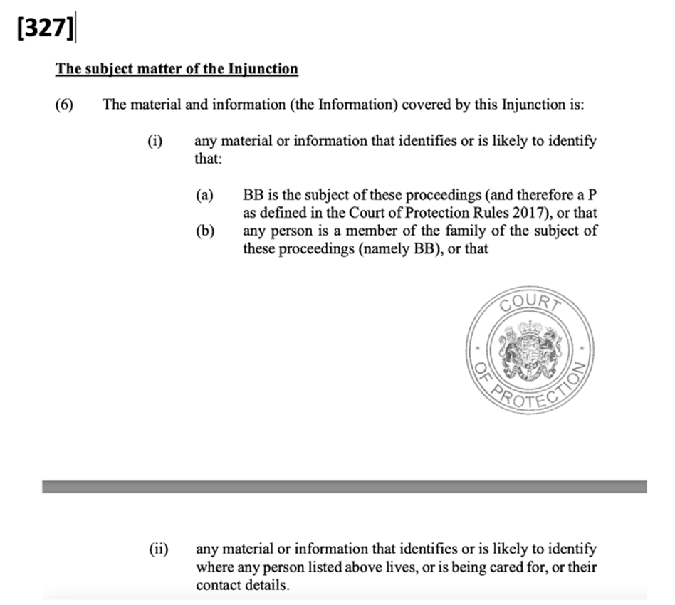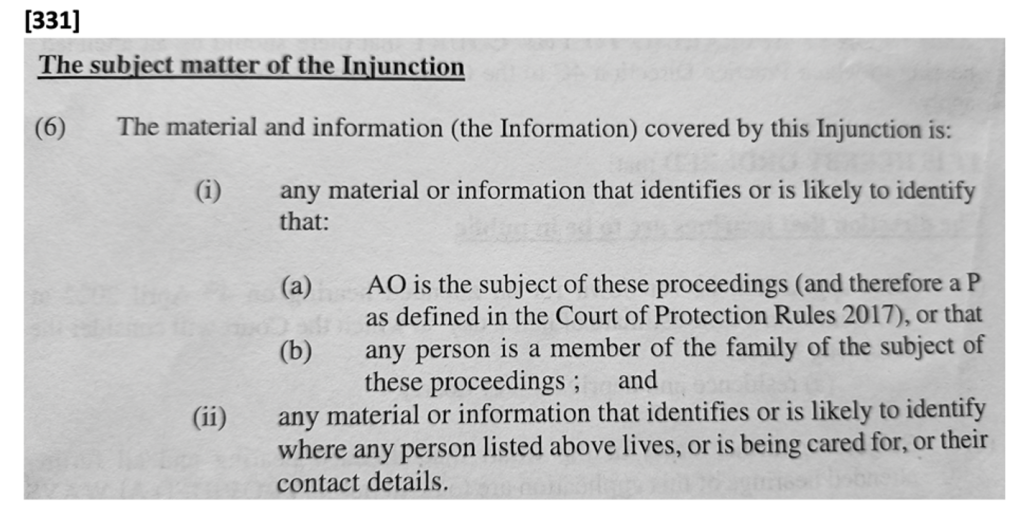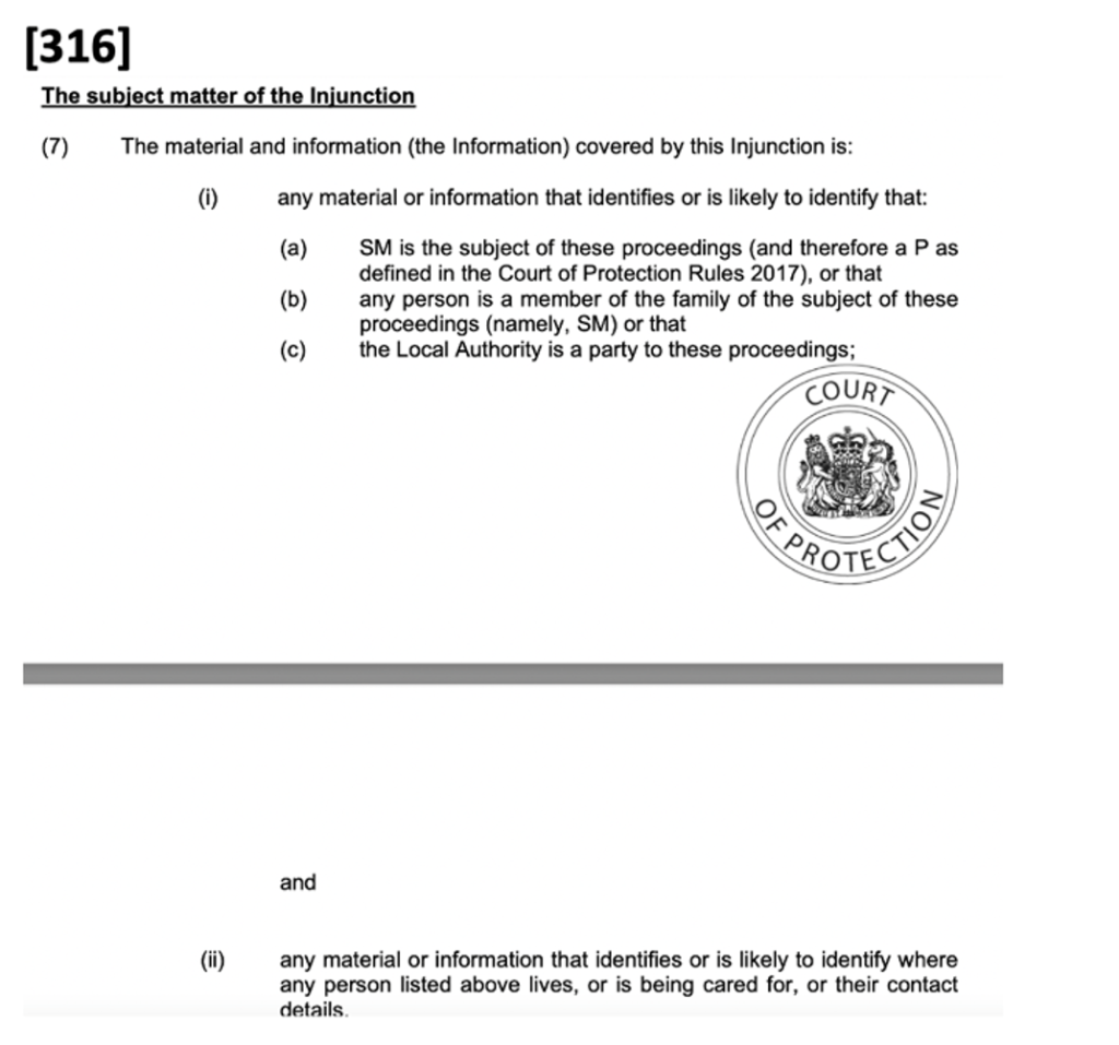 37. I do sometimes have Article 10 concerns which I’ve been unable to address. For example, I’ve sometimes been told that a “standard” TO is in place, only subsequently to receive something like [316] below, which prevents me from identifying a public body (the Local Authority). But by then the hearing was over and there was no opportunity to ask why, or to ask for it to be varied.