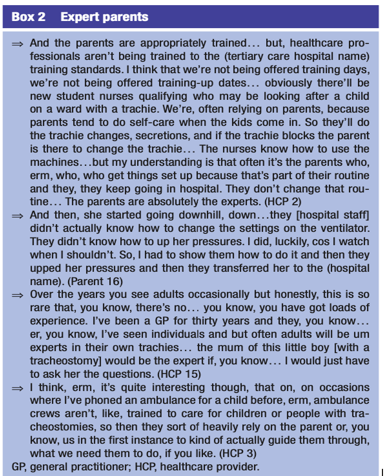 Research on parents of children with tracheostomies and complex needs shows that parents are properly considered ‘experts’