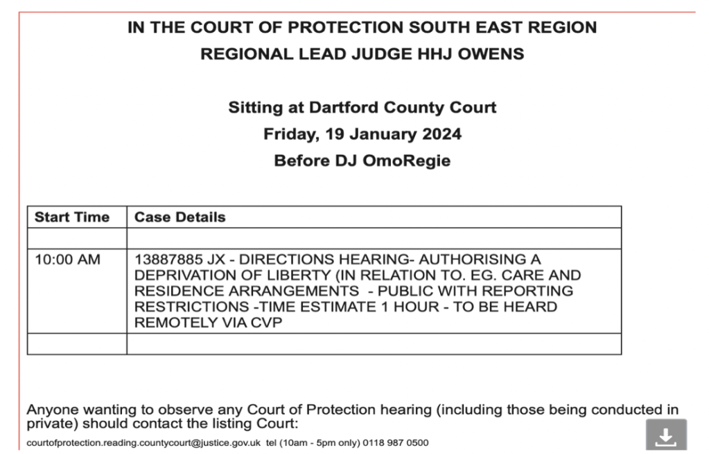 I was very excited to learn that I could shadow Celia Kitzinger as an observer at a remote hearing (via cloud video platform) at 10 am on Friday 19th January 2024.