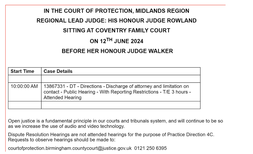 I also wondered about the terminology ‘coercion and control’ and discovered its use in Section 76 of the Serious Crime Act 2015 which ‘introduced the criminal offence of controlling or coercive behaviour in an intimate or family relationship’. Luckily, I had the opportunity to check this with Mr Harrison after the hearing and was assured that that was not how the terminology was being used in this case. (A little knowledge can be a dangerous thing!)