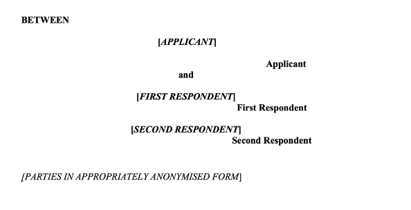 This second screen shot of the standard TO attached to Mr Justice Charles’ note shows that parties should be anonymised: