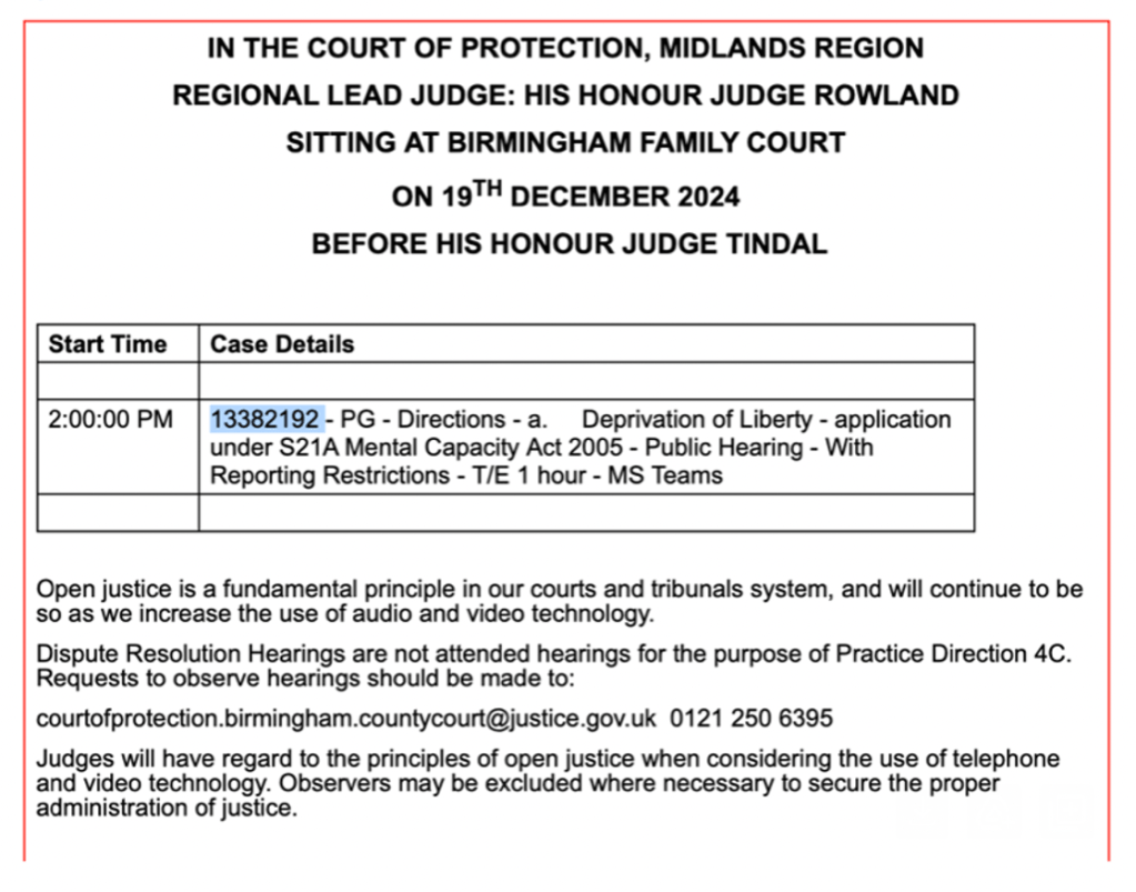 Over the last four years, I have observed multiple court hearings about Mr G (and blogged about them eight times), so when I saw his case number appear in the listings again (COP 13382192) as a Section 21A application (again), I was eager to find out what was happening. The case was listed before HHJ Tindal, who’d also been the judge in all the previous hearings I’d observed.