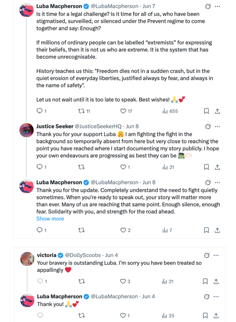 In this context it is possible to understand why Luba believes ‘And when I kept fighting, they came for me’ (below, Facebook post 14th June 2025):