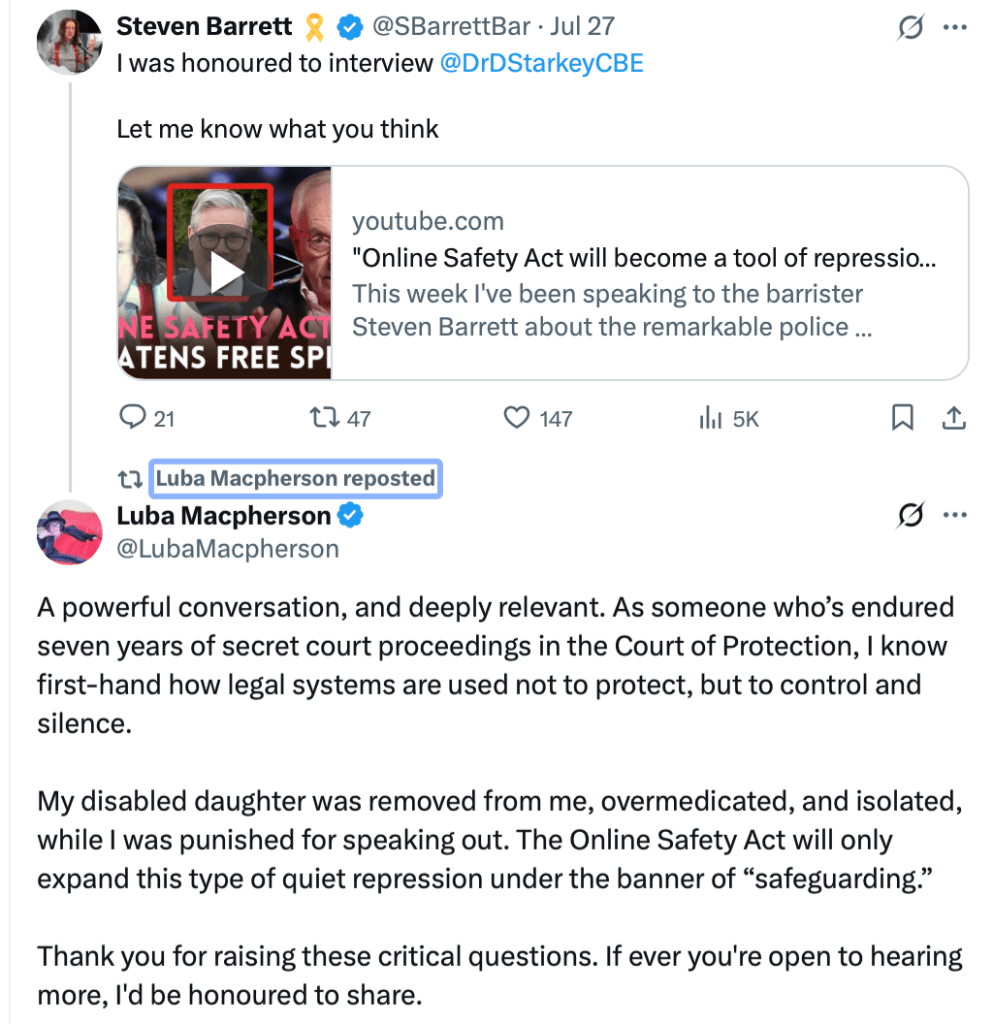 Thank you very much, Claire, for your thoughtful and compassionate analysis, especially your reference to the duty of lawyers under the SRA Code to act when capacity is questioned. But it’s precisely here that I believe the process in my case became deeply flawed. My lawyers claimed to be fulfilling their professional duty, yet failed to act on key legal authorities that protected my right to freedom of expression and to a fair trial.