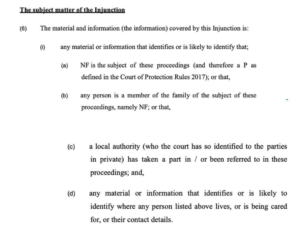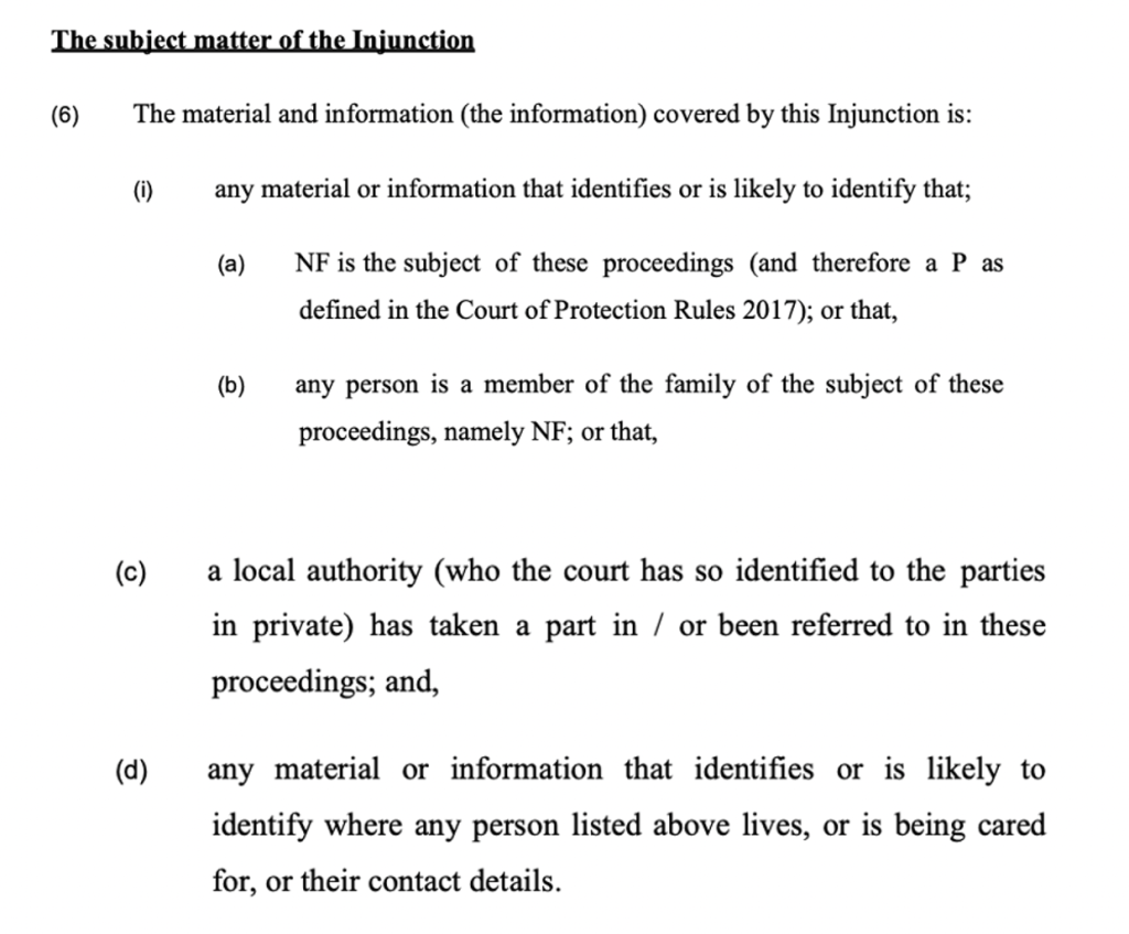 9th June 2025 – Her Honour Judge Williscroft issues a new TO that prohibits the identification of the LA at §6(i)(c) – “a local authority (who the court has so identified to the parties in private) has taken a part in / or been referred to in these proceedings”. It clearly refers to a hearing set down for 12th June 2025. The public bodies are not anonymised on the face of the Order.