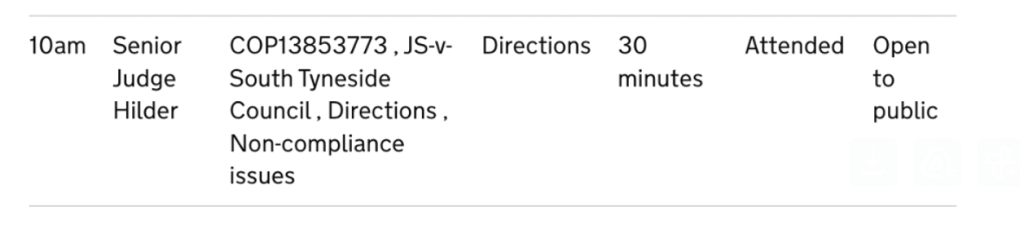 It concerns “non-compliance issues” in a case called JS v South Tyneside Council – and I guessed (correctly) that the non-compliance related to the behaviour of South Tyneside Council rather than to JS, the protected party in the case.