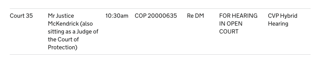 • DM –  via his Litigation Friend the Official Solicitor with counsel Sophia Roper KC (also on a remote link)
