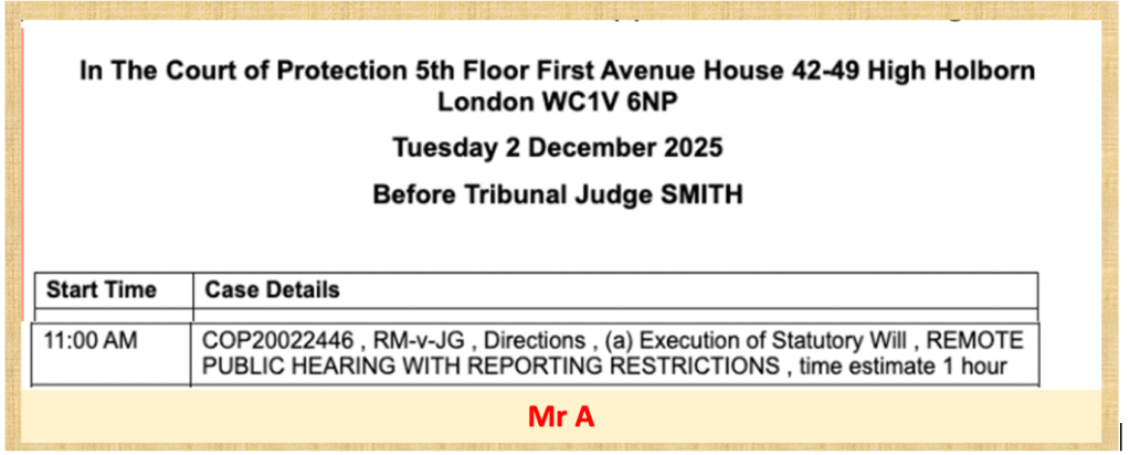 The matter has been before the Court for more than a year (since November 2024), with about seven hearings so far, and no date yet for a final hearing. It was back before DJ Lucas in December 2025, a month earlier than he’d anticipated (there’s a ‘case management’ hearing in January), because HHJ Greenfield was persuaded to order an earlier hearing after the urgent hearing before him, consequent upon the protected party having lost her litigation friend, due to lack of security for costs.