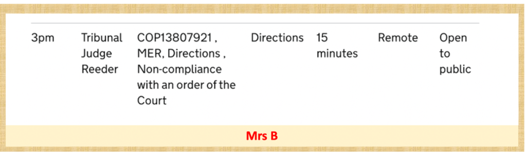 Judge: In July 2022, you were appointed as Property and Affairs Deputy for your mother and asked for authority to sell her house and you didn’t get it. You then filed a standard authorisation… I’m not sure the court has ever dealt with permission to sell your mum’s house?