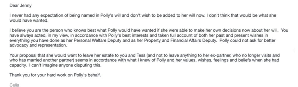 It wasn’t clear to Zoe (or me) why an application was considered necessary. As Zoe wrote to the psychologist: “I need to clarify what they hope to achieve from taking it to the Court of Protection. In my eyes, as a parent I would always act in [P]’s best interests therefore it shouldn’t be needed?”.