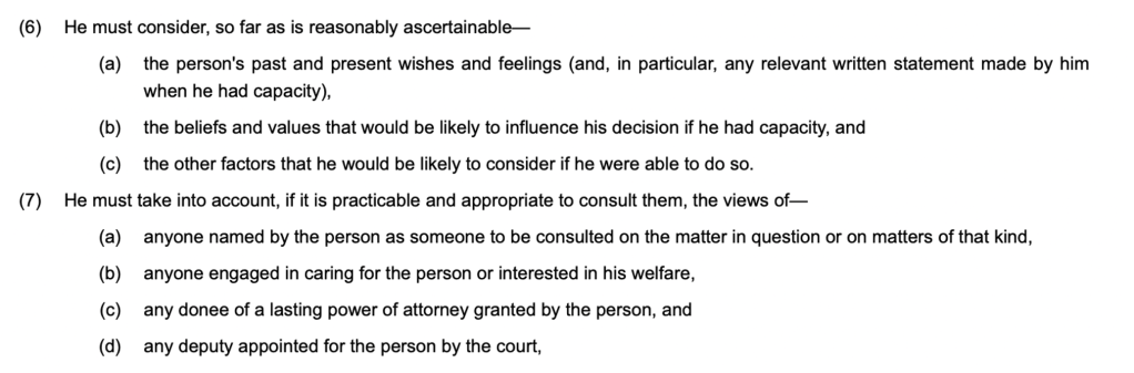 These sorts of ‘advance statements’ carry great weight in best interests decision-making.