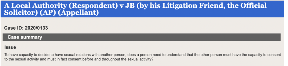 By Charlotte Roscoe and Celia Kitzinger, 9th July 2021 Editorial Note: This blog post concerns a case in the Supreme Court. The Open Justice Court of Protection Project normally covers only cases in the Court of Protection. We have made an exception in this case (as we have before, for cases in the Court ofContinue reading “Capacity to Engage in Sexual Relations: A forthcoming Supreme Court hearing”